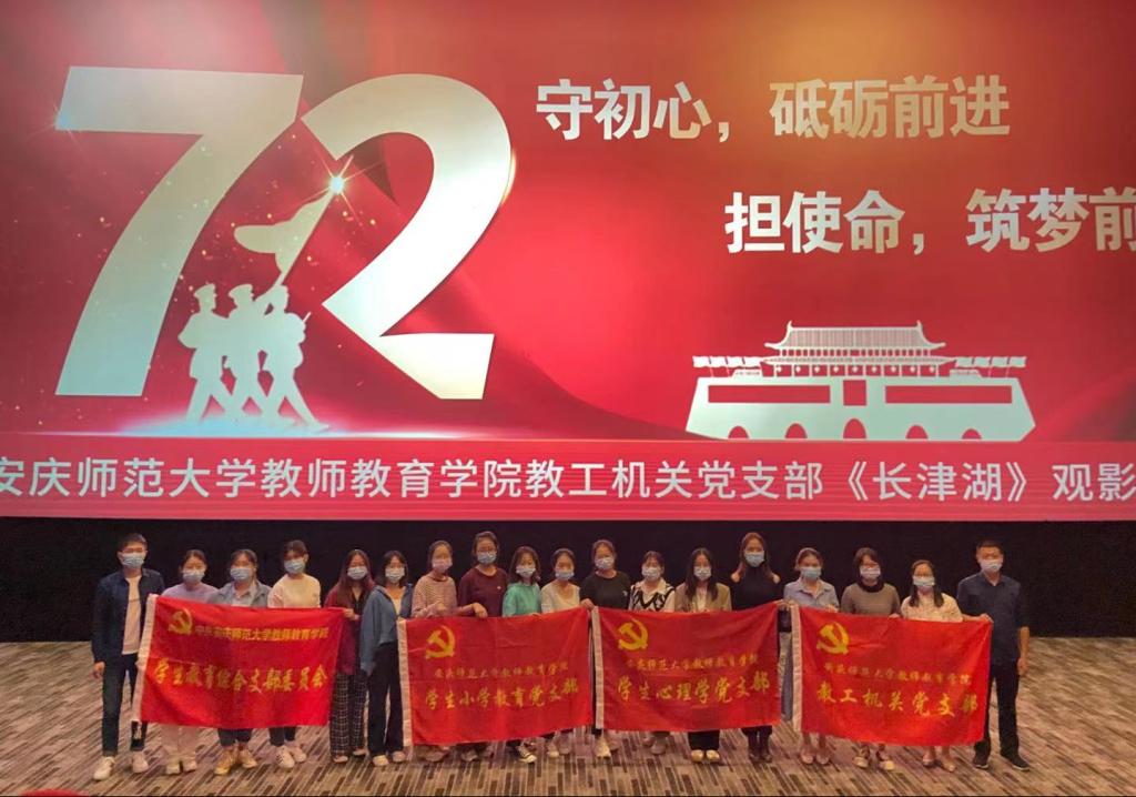 10月9日,Beat365官网教工机关党支部组织了“守初心,砥砺前进 担使命,筑梦前行”主题观影活动。教工机关党支部11名教师党员,与学生教育综合党支部、学生小学教育党支部、学生心理学党支部等12名学生党员共同观看了《长津湖》影片。
