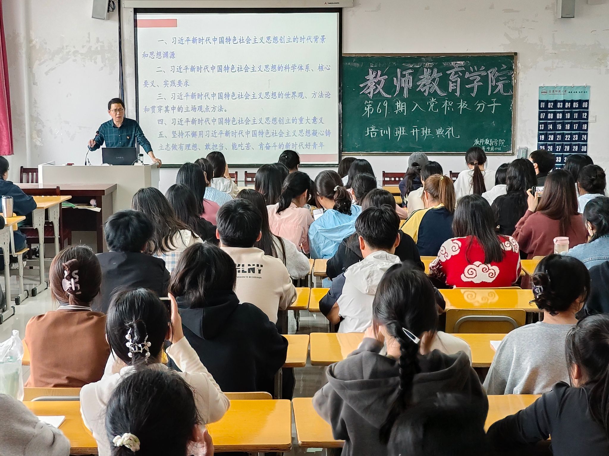 4月10日,Beat365官网第69期入党积极分子培训班开班典礼在J305教室举行。学院党委书记何孔蛟,副院长陈效飞、王皓宇,各学生党支部书记及第69期入党积极分子参加,培训班班主任汪悦主持开班典礼。