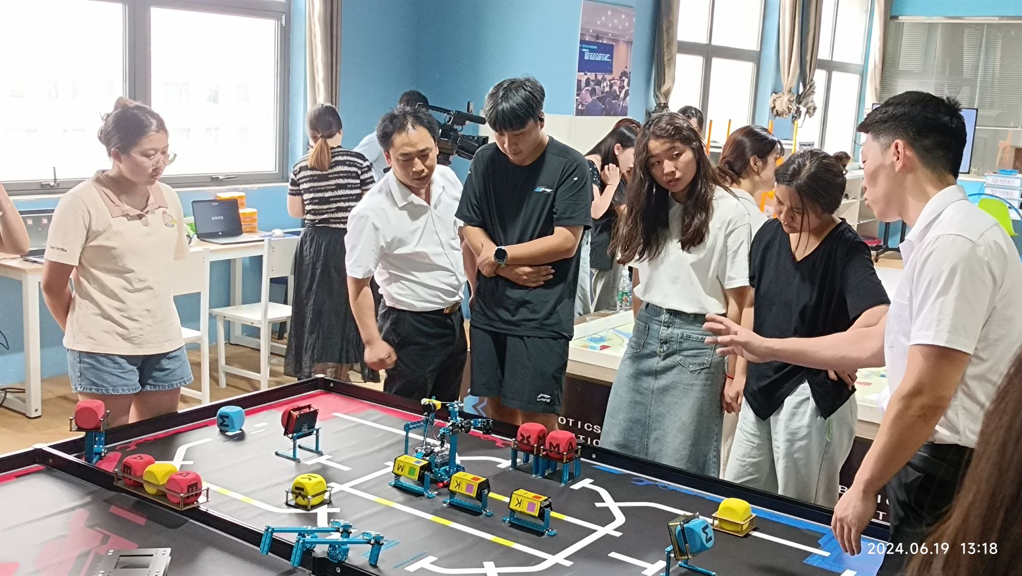 见习活动分两个阶段进行,首先教育技术学专业师生在工作人员带领下参观了公司创客教育的系列项目,包括3D打印、无人机飞行、机器人对抗、科学教育等项目。公司讲师还开展现场教学,详细讲解了各个科目的任务目标、要点和程序设计等。学生也在教师指导下纷纷投入项目实践,依次体验各个创客教育项目的实际流程,亲身感受创客教育、编程教育和人工智能的魅力。