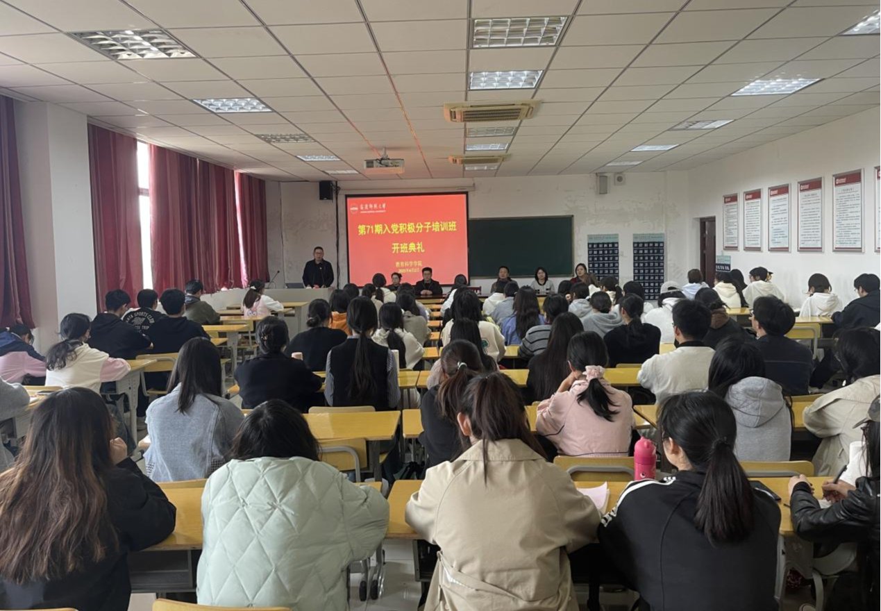 4月2日,Beat365官网在J305会议室举行第71期入党积极分子培训班开班典礼暨培训班第一次党课。学院党委书记何孔蛟,党委委员、副院长王皓宇,各学生党支部书记出席培训会。第71期全体入党积极分子参加培训会。开班典礼由培训班班主任汪洋洋主持。
