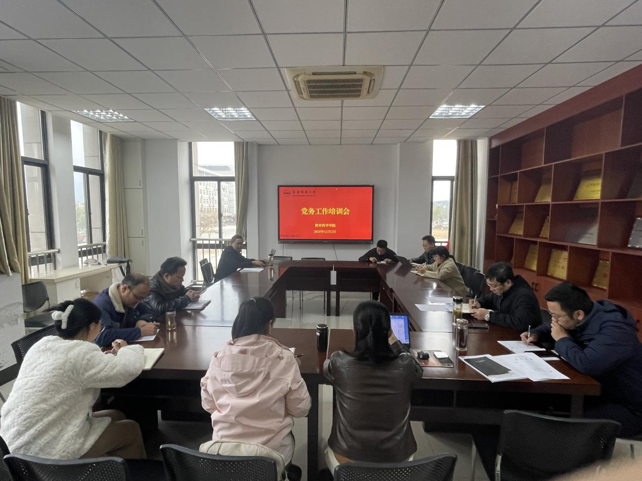 12月2日,学院在J202会议室召开党务工作培训会。全体党支部书记参加会议,全体辅导员列席会议。会议由党委书记何孔蛟主持。