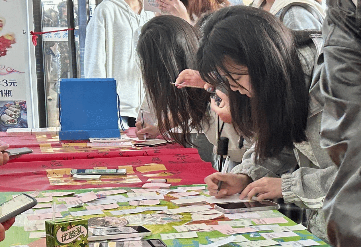 活动现场,工作人员向同学们科普自闭症知识,加强大家对自闭症的认识,并引导他们亲手写下对自闭症儿童的祝福。字迹无声,却是心声。“星星很遥远,但也很美丽”,“愿你不再孤单,但依旧闪耀”……字字句句是祝福亦是理解。“见字如面,汇聚温暖”环节,同学们纷纷在印有“点亮一盏灯,照亮一颗星”的横幅上签名,一撇一捺间,寄予着真挚的祝福与誓言。