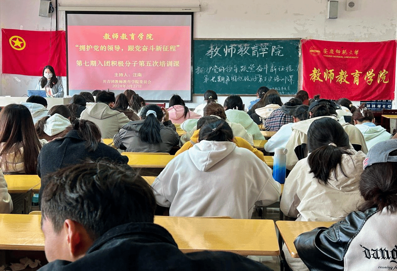 课程伊始,全体成员共唱共青团团歌。汪南以中国共产党诞生的历史背景为话题,带领入团积极分子们共同学习了党的基本理论、基本路线、基本方略,帮助他们不断增进对党的创新理论的政治认同、思想认同、理论认同、情感认同。随后,她与同学们一起重温习近平总书记在党的二十大讲话上对青年的寄语,鼓励大家要坚定不移拥护党,在奋斗中汲取青春力量。