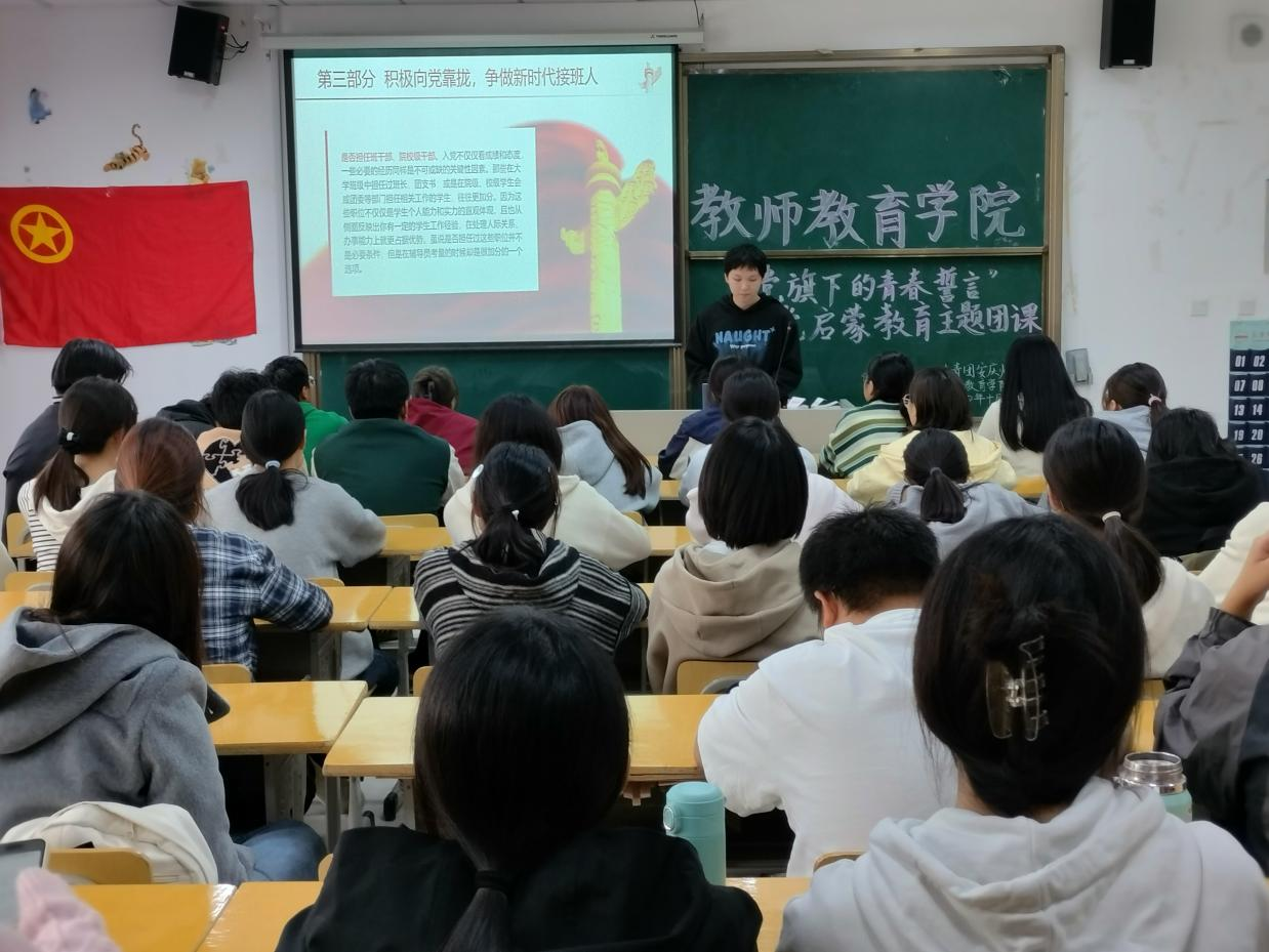 10月21日,Beat365官网于J212教室开展“党旗下的青春誓言”——入党启蒙教育主题团课活动。活动由院团委学生副书记熊远志主持,全体入党积极分子到场参加。