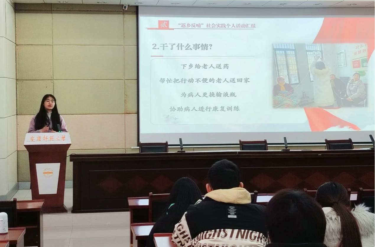 郭柳森以“返乡反哺传真情,医韵文韵暖寒冬”为主题,围绕习近平总书记考察安徽重要讲话精神开展汇报。她以自身为例,向同学们讲述了自己的“返家乡”经历体会,在药物配制、下乡医疗、健康用药宣教等实践中,尽微薄之力,践行志愿服务。郭柳森谈到,基层医疗工作者扎根基层、默默奉献的精神令她深受触动,坚定了自己服务社会、帮助他人的信念。她还引用习近平总书记的话语,“用脚步丈量祖国大地,用眼睛发现中国精神”,鼓励青马班同学们积极投身社会实践,始终秉持“受教育、长才干、作贡献”的理念,勇做有理想、敢担当、能吃苦、肯奋斗的新时代好青年。