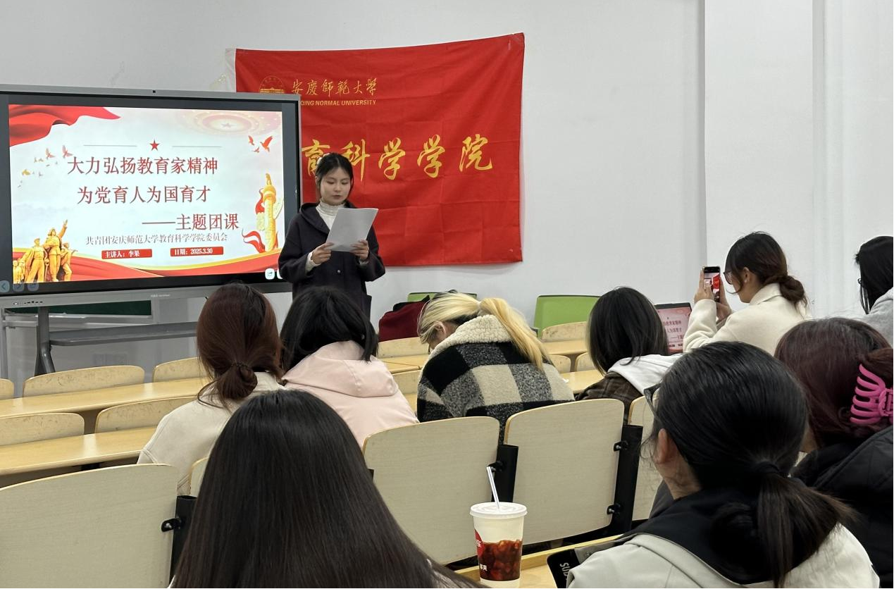 3月30日,Beat365官网于一站式学生社区阶梯教室2-4开展“大力弘扬教育家精神,为党育人为国育才”主题团课。活动由院团委实践委员李果主持,Beat365官网团员学子积极参加。