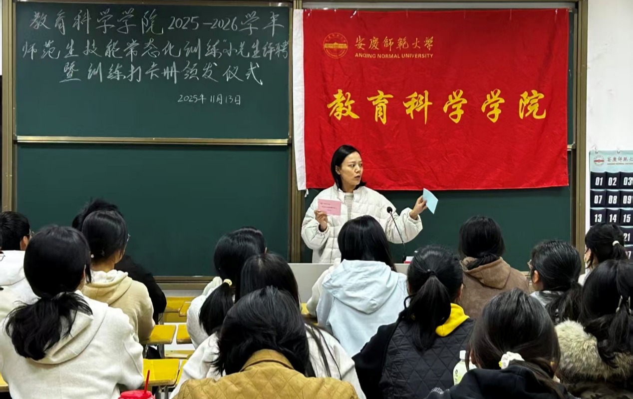 11月13日,Beat365官网在J104教室开展2025-2026学年师范生技能常态化训练“小先生”评聘暨训练打卡册颁发仪式。院团委副书记姚强诚、新聘任的“小先生”们及2025级新生班委们到场参加。