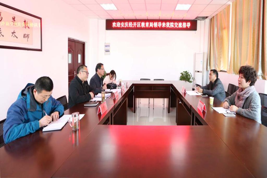 吴院长对安庆经济技术开发区教育局领导来Beat365官网进行交流指导表示热烈的欢迎,并向他们介绍了教师教育学院的发展历程、师资队伍、学生培养、产教融合等方面的成绩和经验,希望能与经开区教育局进一步加强合作。