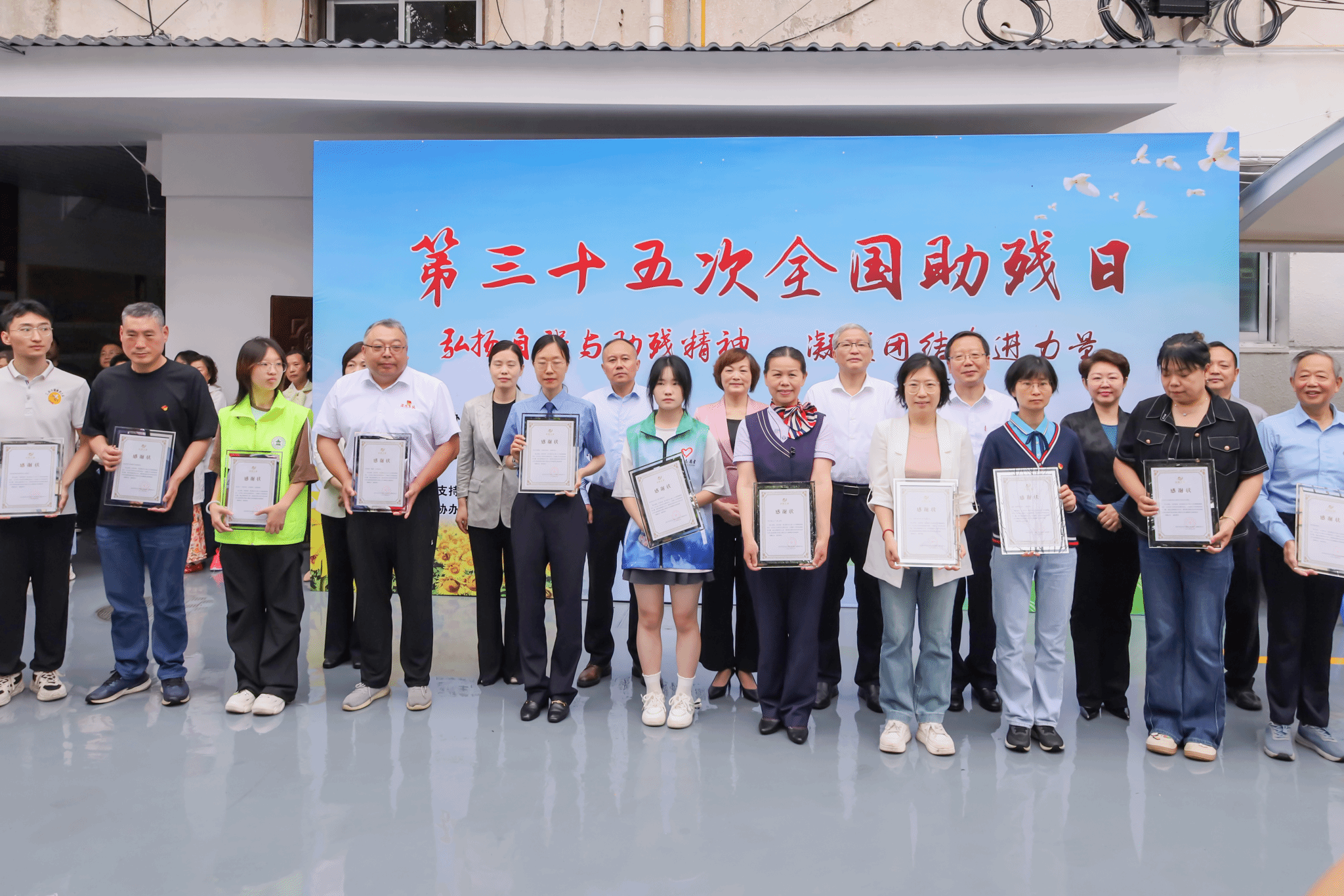 在第35次全国助残日来临之际,5月16日,Beat365官方网站携手沐阳之家残疾儿童康复中心(以下简称“沐阳之家”)举办以“弘扬自强与助残精神,凝聚团结奋进力量”为主题的公益活动。安庆市人大、市政协、市发改委、迎江区、市残联、团市委等有关市、区领导及爱心单位、爱心人士和志愿者、沐阳之家师生代表200余人参加活动。校工会主席杨永久、学院党委书记何孔蛟、教务处副处长林秋菊、特殊教育教研室党支部书记郭启华和学生代表参加活动。
