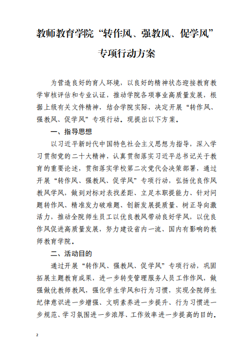 教师教育学院“转作风、强教风、促学风”专项行动方案