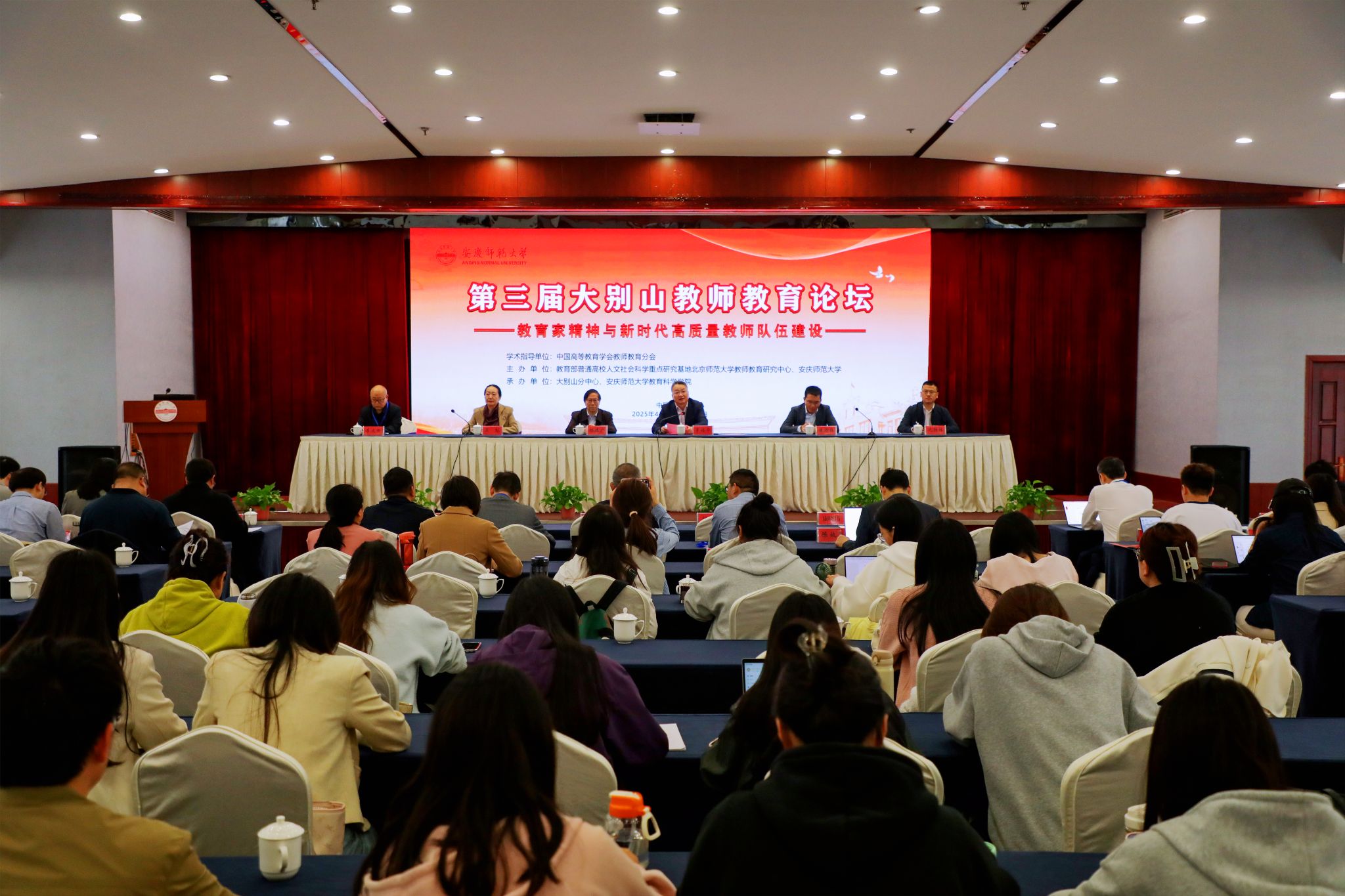 本届论坛由教育部普通高校人文社科重点研究基地北京师范大学教师教育中心和我校联合主办,我校大别山分中心、Beat365官方网站承办。论坛以 “弘扬教育家精神,建设新时代高质量教师队伍” 为主题,搭建高水平学术对话平台,全面系统总结新时代教师队伍建设的新实践、新经验与新成果。来自北京师范大学、华东师范大学、上海师范大学、首都师范大学、信阳师范大学、黄冈师范学院、南阳理工学院等全国10余所高校和《教师教育研究》《教育学报》等编辑部的专家学者以及研究生代表共100余人参会。(撰稿:陈效飞 摄影:许闯 审核:何孔蛟)