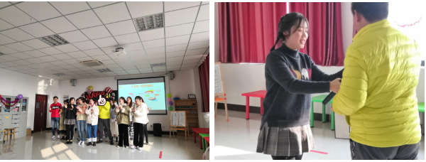 据悉,在本学期,教师教育学院特殊教育专业每周一至周五上午及每周二至周四下午会为自闭症学生提供社会服务,由特教16、17级本科生和18、19级研究生负责给小朋友们上个训课和团课。此次新年联欢会既是“迎新年”主题系列活动的成果展示,也是对本学期社会实践的总结。自闭症学生和大学生一起主持,一起做游戏,一起唱《隐形的翅膀》,一起跳《新年乐淘淘》,一起表演情景剧《过新年》……尤其最后师生们共同带来的大合唱《相亲相爱》将联欢会的气氛推到高潮。